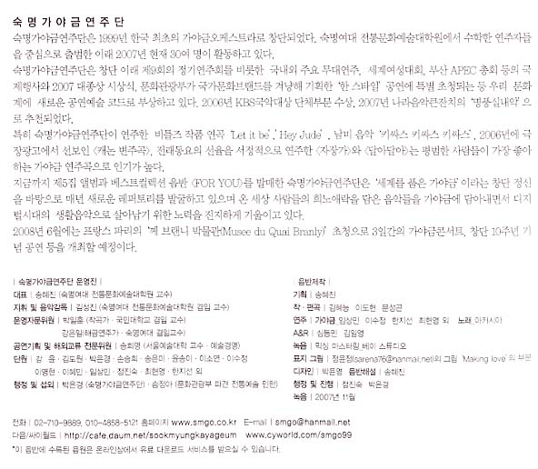 °¡¾ß±Ý À½¾ÇÀÇ ½Å¼¼°è¸¦ ÇÑ ¹ß ¾Õ¼ ã¾Æ³ª¼´Â ±¹¾Ç°èÀÇ ´º ÇÁ·ÐƼ¾î ¼÷¸í°¡¾ß±Ý¿¬ÁÖ´ÜÀÌ ¾ÆÄ«Æç¶ó, ºñº¸ÀÌ ´í½º¿Í ¸¸³ª ¹ßÇ¥ÇÏ´Â 2007³â ½Å³â¸ðÀ½